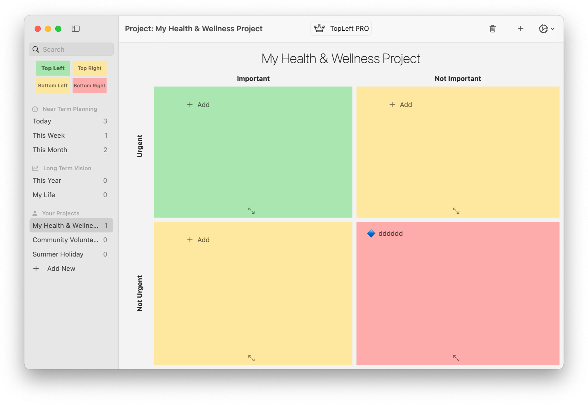 TopLeft makes it easy to organize your life by looking at the bigger picture. Quickly and easily identify your true priorities when you group them into actionable segments.
